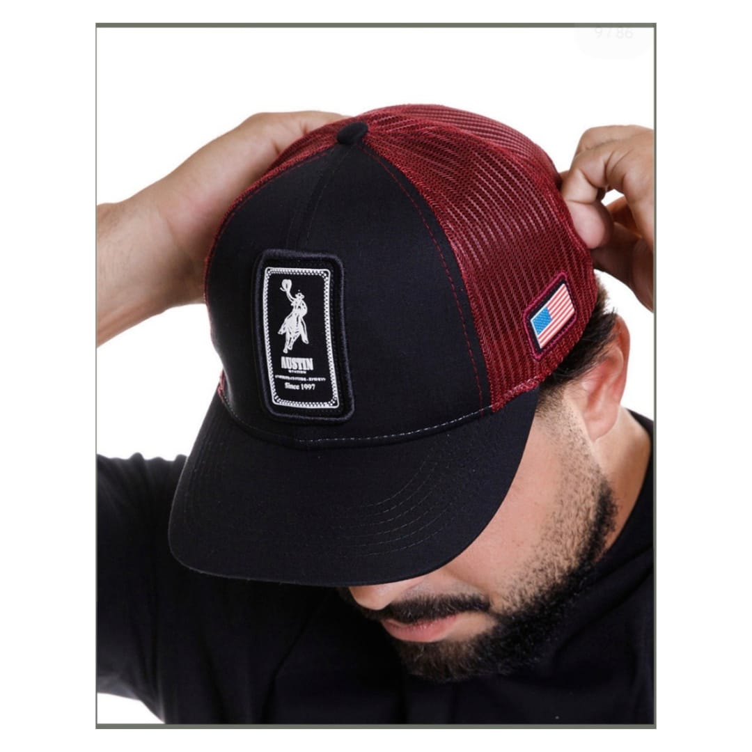 BONÉ AUSTIN WESTERN PRETO C/ VERMELHO