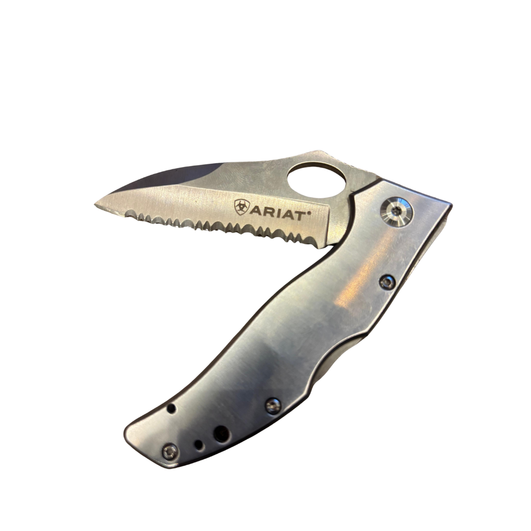 O canivete Ariat é o acessório perfeito para quem valoriza praticidade, durabilidade e estilo autêntico. Fabricado com materiais de alta qualidade, possui lâmina afiada, acabamento detalhado e design exclusivo da marca Ariat, referência no universo country e western. Ideal para uso no dia a dia, no campo, em aventuras ou como peça de coleção, o canivete une funcionalidade e sofisticação em um só produto. Adquira já o seu e tenha em mãos um item resistente, elegante e indispensável!