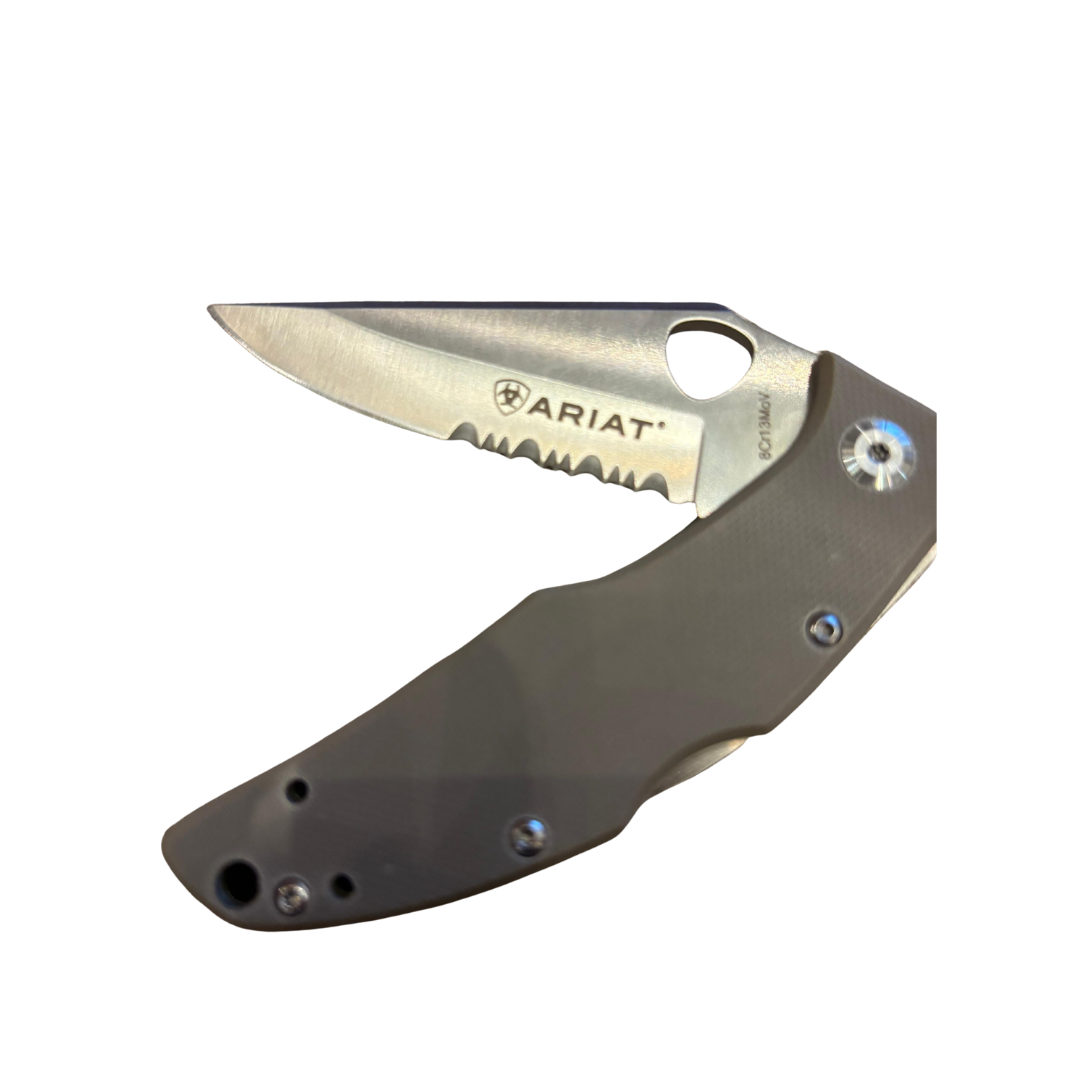 O canivete Ariat é o acessório perfeito para quem valoriza praticidade, durabilidade e estilo autêntico. Fabricado com materiais de alta qualidade, possui lâmina afiada, acabamento detalhado e design exclusivo da marca Ariat, referência no universo country e western. Ideal para uso no dia a dia, no campo, em aventuras ou como peça de coleção, o canivete une funcionalidade e sofisticação em um só produto. Adquira já o seu e tenha em mãos um item resistente, elegante e indispensável!