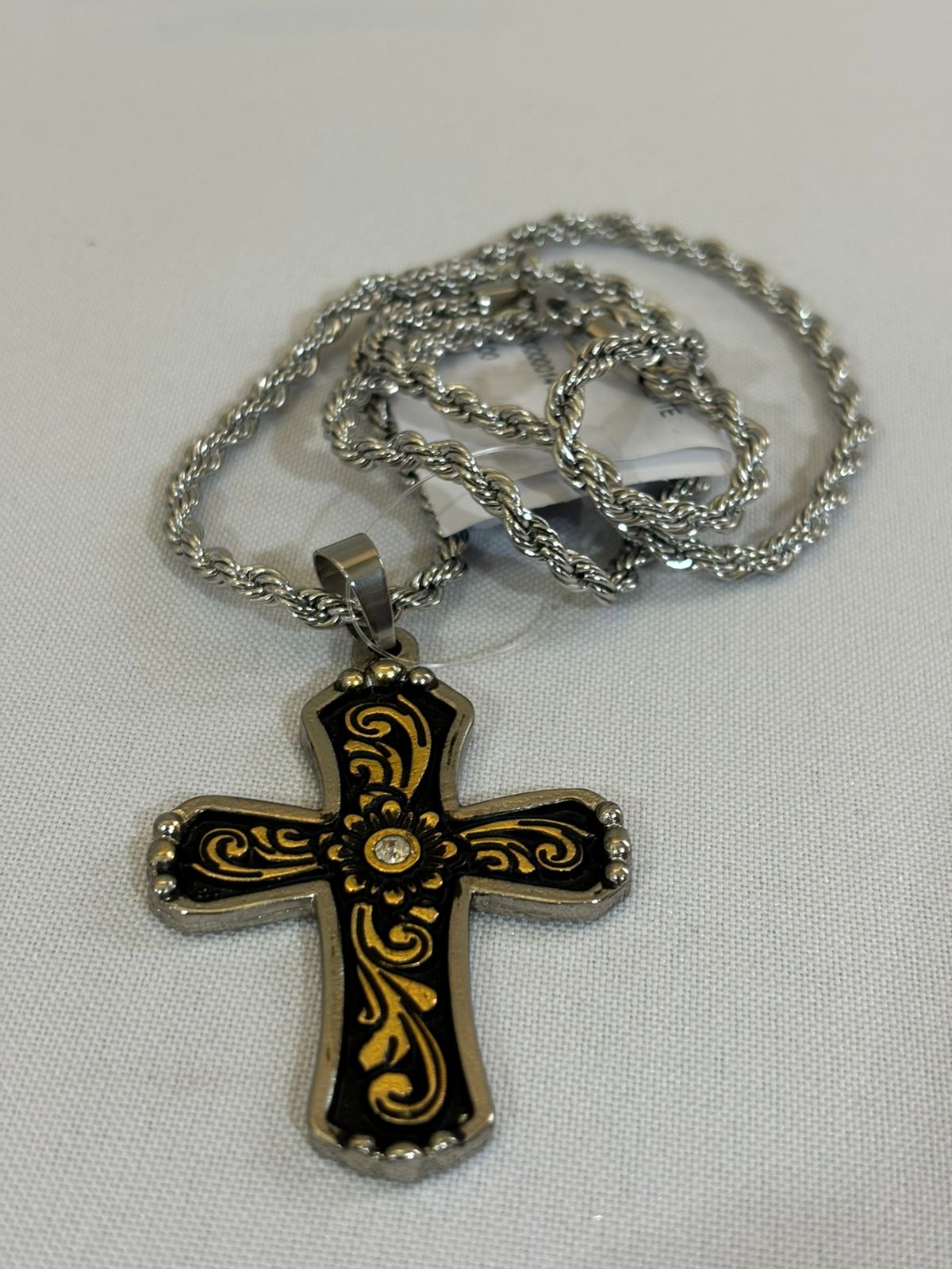 Conheça o Colar Pingente Cruz com Strass Transparente, uma peça que une brilho e espiritualidade no estilo country. Com um design delicado adornado com strass transparente, este colar é perfeito para quem busca um toque de elegância e simbolismo. Feito com materiais de alta qualidade, ele é ideal para completar seu visual em rodeios e eventos country. Adquira o seu agora em nossa loja online e adicione um toque de luz e fé ao seu estilo.