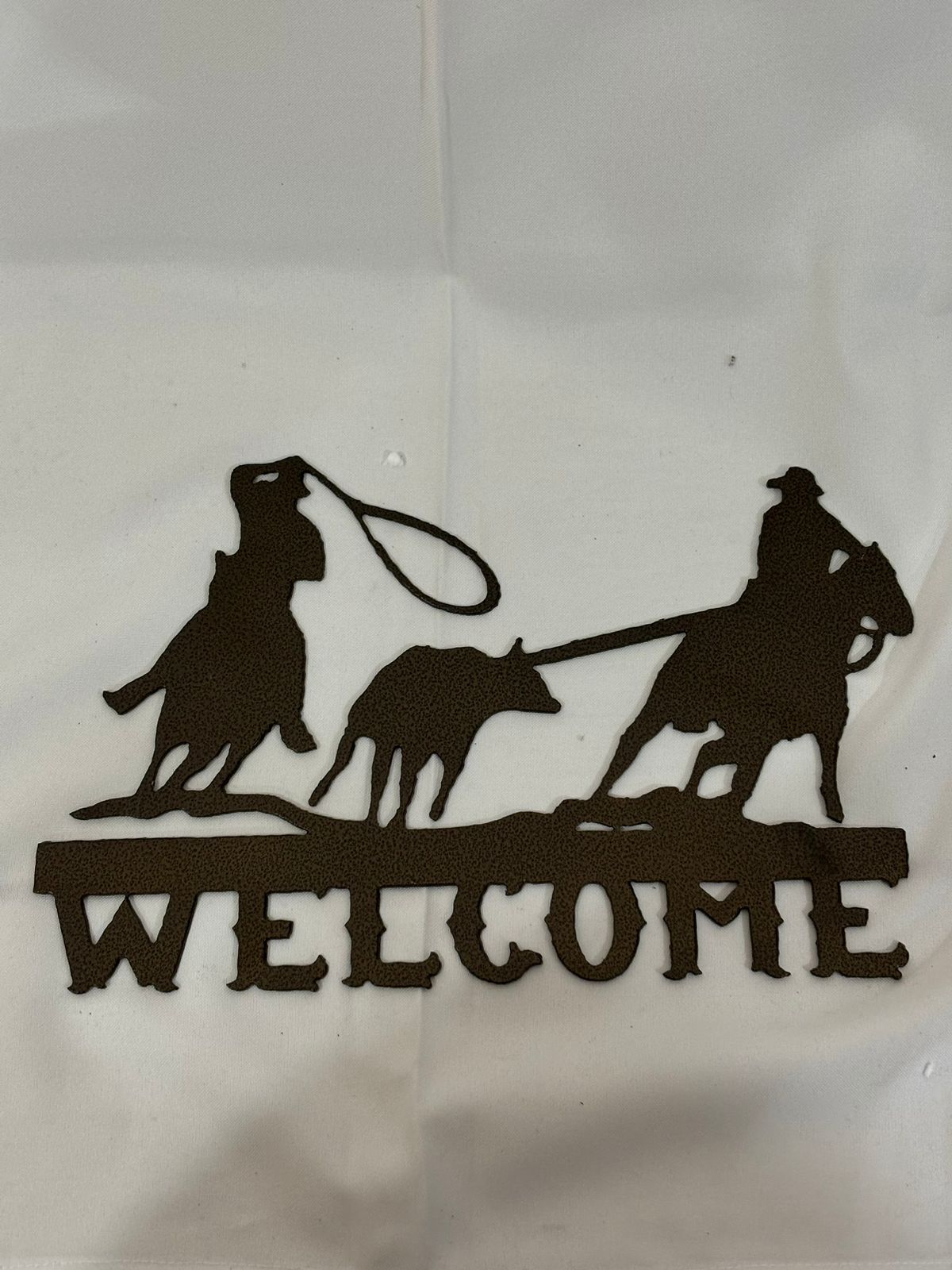 Placa Decorativa de Parede Quadro Laço Boi Welcome